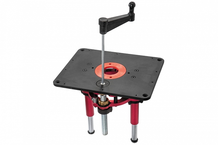Крепежная пластина с механизмом подъема и опускания JRMLS-1 для установки в стол фрезерного мотора JRM-1 или другого подобного с цилиндрическим корпусом диаметром 98-107 мм.