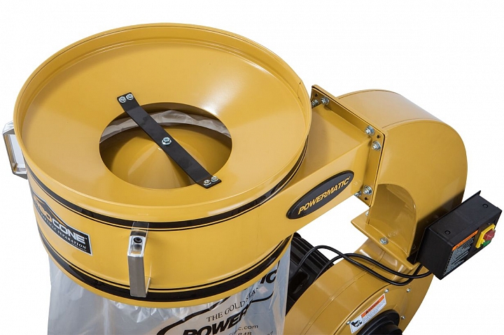 Powermatic PM1300CK-T производительная аспирационная установка, штатно оборудованная 2-микронным фильтром со встроенной системой самоочистки (стряхивания мусора в мешок при повороте рукоятки). Важная особенность модели – полностью металлический воздуховод: из стали сделана «улитка», крыльчатка, рукав до фильтра, сам корпус к которому присоединяются фильтр и пылесборник, а также внутренняя часть корпуса (конический сепаратор) системы TurboCone. Последняя способствует более полному отделению мусора под действием центробежных сил и повышает плотность его укладки в мешке за счет физического разделения зон складирования и турбулентности.